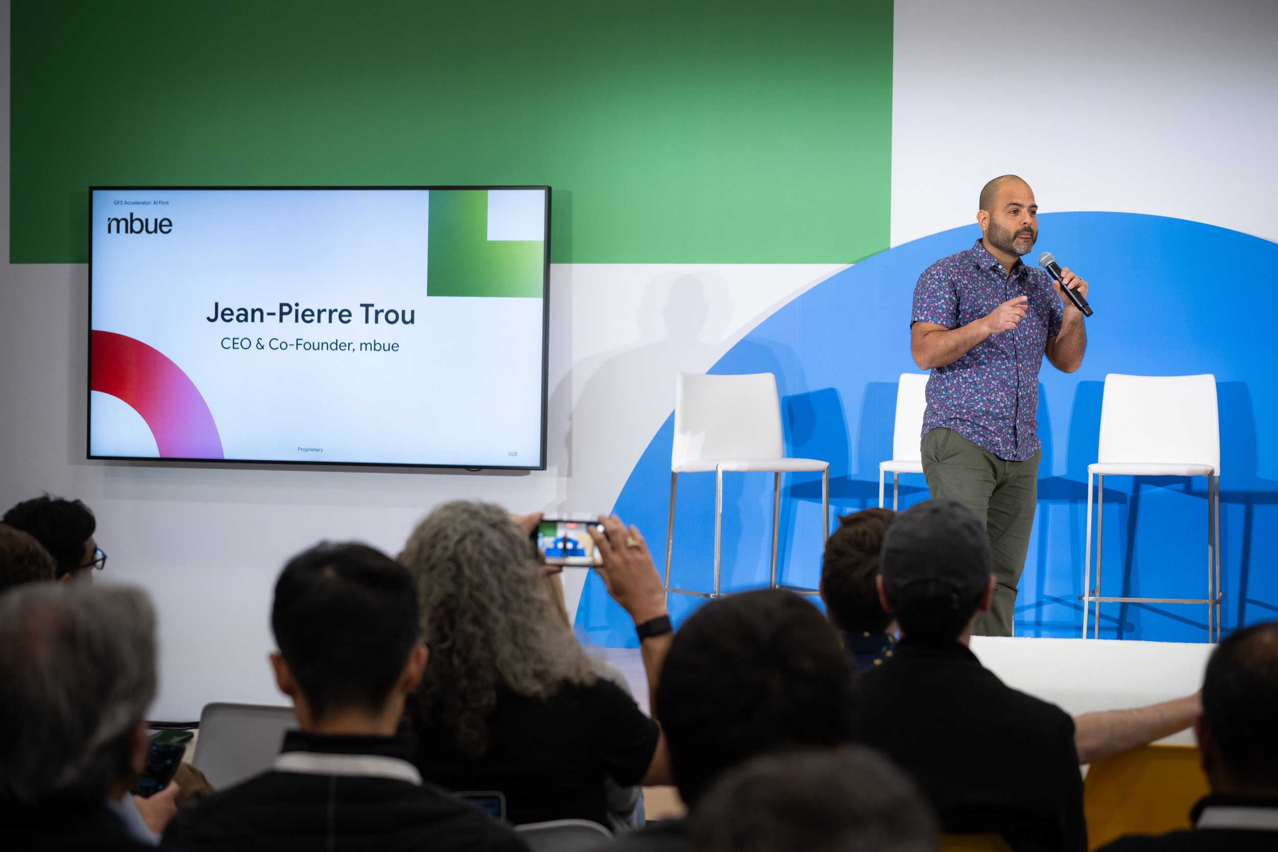 Dave and I had the privilege of delivering a 90-second pitch presentation about mbue at the Google Cloud Next ‘24 conference in Las Vegas. I was thrilled to take the stage at the Startup Lounge as Google announced that mbue was selected for the inaugural cohort of the Google for Startups Accelerator: AI First program! It felt like a dream come true and was a huge validation of our team’s relentless dedication and innovative vision to transform the construction industry through AI.
